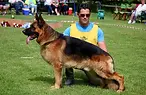 4 years, medium size and strong female in good condition, stretched proportions, good head, dark eyes, very good pigment, the withers are flat, straight but somewhat loose back, the croup is short, the upper arm could be longer and better angled, very good back hand angulation, somewhat short underline, sufficiently effective movement which should be a little freer and elbows tighter, not as well trained as the other dogs which effected her presentation.